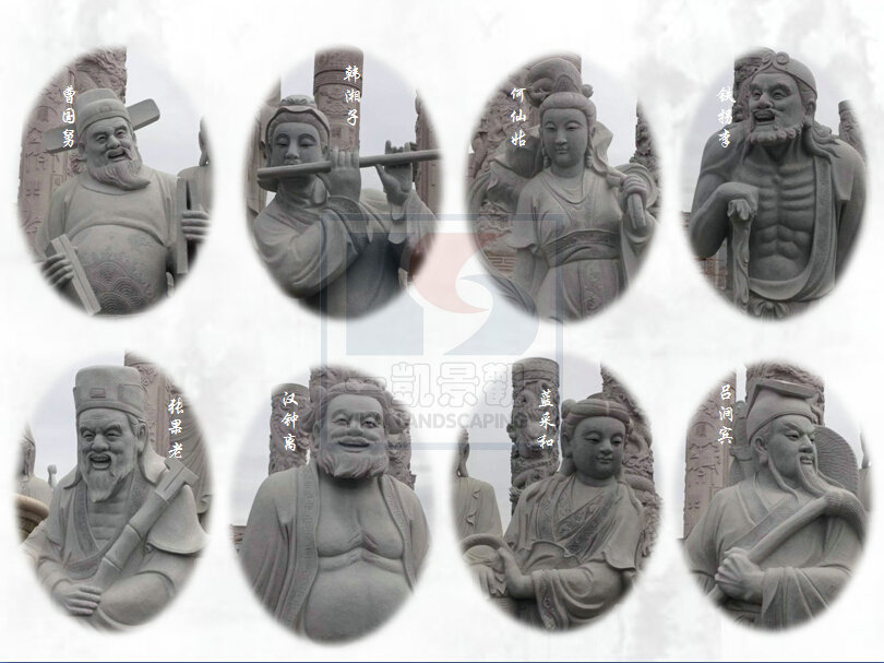 傳說八仙分別代表著男、女、老、少、富、貴、貧、賤,由于八仙均為凡人得道,所以個(gè)性與百姓較為接近,是道教中相當(dāng)重要的神仙代表,中國許多地方都有八仙宮,迎神賽會也都少不了八仙。八仙所持的檀板、扇、拐、笛、劍、葫蘆、拂塵、花籃等八物為“八寶”,代表八仙之品。文藝作品中以八仙過海、八仙獻(xiàn)壽最為有名。