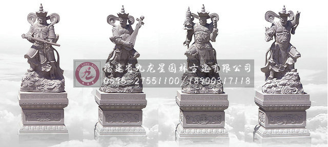 石雕四大天王通常被佛教視為四大門(mén)庭護(hù)法神將,他們分別是南方增長(zhǎng)天王、東方持國(guó)天王、西方廣目天王、北方多聞天王。