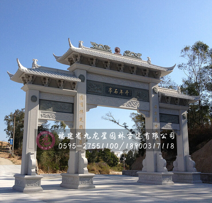 牌坊作為中國傳統(tǒng)的建筑模式,傳承至今其擁有更多自己的風格與特色,成為外國學者們研究中國建筑文化的主要途徑和方式。傳統(tǒng)石牌坊設計形式多樣,現代石雕牌坊體現給人的感覺秀氣細膩,就如同南方人所體現出來的那種細膩靈動。在現在牌坊制作市場上,最為常用的牌坊有沖天式和門樓式兩種。其中沖天式牌坊的間柱高于明樓樓頂,讓其看起來更加高大,門樓式牌坊配有一間二柱,以及其他形狀,最高處是明樓正脊,增加了它傳統(tǒng)美和歷史厚重感,這需要采購者根據自身的情況來選擇購買與擺放。
