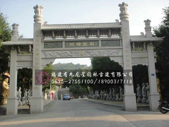 石雕牌坊即石頭修建的牌坊,是一種裝飾建筑物,也是雕刻藝術的一種。常見于古代陵園,如北京明代陵墓外面的大紅門前,有石牌坊一座,整個牌坊為五間六柱十一樓,結構勻稱和諧,造型美觀大方?,F代石牌坊常用于村鎮(zhèn)入口,寺廟景區(qū)入口等。主要作為標志性的裝飾建筑物,在設計上也沒有古建石雕牌坊那么講究。