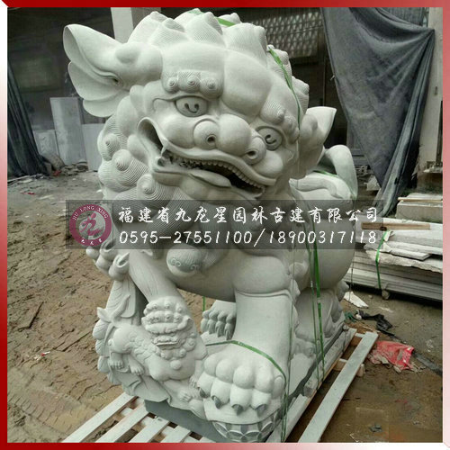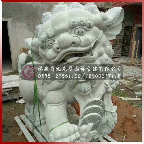 石雕獻(xiàn)線獅是因石獅造型前一般常飾一串古錢而得名,它是南方石獅當(dāng)中的一種造型。獻(xiàn)錢獅寓有招財進(jìn)寶之意,造型可愛乖巧,富有靈性。它是漢族民間最為常見的一種石獅造型之一,常擺放于寺廟或是祠堂門前。獻(xiàn)錢獅一般也為雌雄一對,雄獅常飾于大串的銅錢,寓意招財進(jìn)寶。而雌獅則戲玩著小獅子,寓意人丁興旺之意。