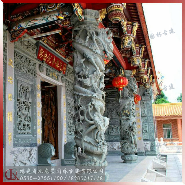 寺廟石雕龍柱是一種龍形浮雕圓柱,通身塑有纏柱云龍,栩栩如生,立在廣場路邊成為景觀和地標(biāo)。在我們福建閩南沿海地區(qū)幾乎逢廟必有龍柱,讓人可以從龍的軀體雕鑿中感受到古代藝匠想要極力表達(dá)的“龍行虎步”、“龍虎精神”的意念。龍柱是中華民族的傳統(tǒng)建筑物,有著悠久的歷史。