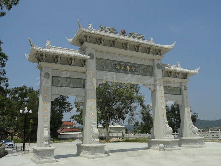 邁步中華大地,不論是南方還是北方,不論是繁華的都市還是偏遠的鄉(xiāng)村,在許多街衢道路、園林名勝、廟宇寺觀、橋梁津渡、陵墓祠堂等地方,人們常??梢钥吹酱A⒅蛔沃聘鳟惖?strong>石雕牌坊。這些牌坊或古樸凝重、莊嚴肅穆,或金碧輝煌、絢麗華美,構(gòu)成了一幅瑰麗多姿、蔚為壯觀的獨特人文景觀,形成了中國特有的一種文化現(xiàn)象。