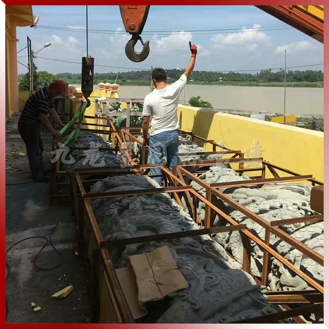 九龍星園林古建位于福建惠安,具有很強(qiáng)的材料選取優(yōu)勢,通過專業(yè)且標(biāo)準(zhǔn)化的采購渠道,甄選出本地優(yōu)質(zhì)的礦料,加工的羅源青青石龍柱,精雕細(xì)琢,龍柱用于寺廟大殿美化,贏得客戶好評。