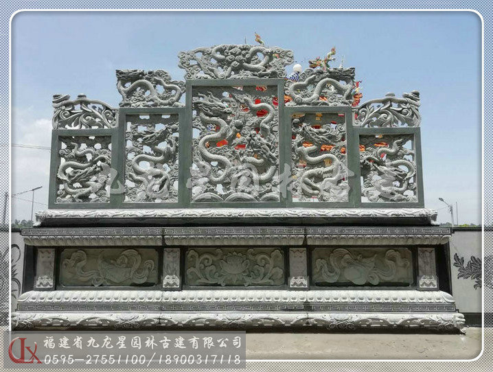 青石浮雕大型石雕屏風雙面雕龍工藝品 精致古典