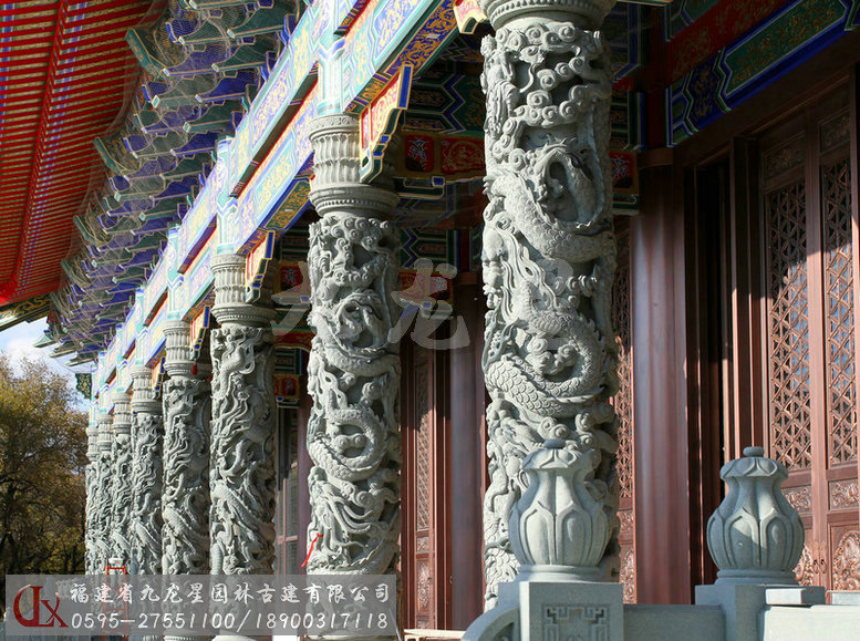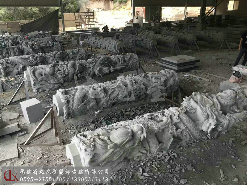 九龍星園林古建加工的寺廟石雕龍柱有單龍柱、雙龍柱、滾龍柱、盤龍柱、蟠龍柱、華表柱、龍鳳柱、八仙龍柱、青石龍柱等多種造型雕刻。我們通過專業(yè)且標準化的采購渠道,甄選優(yōu)質(zhì)的礦料,加工的寺廟石雕龍柱,大批量應(yīng)用于寺廟建筑裝飾美化,贏得客戶好評。