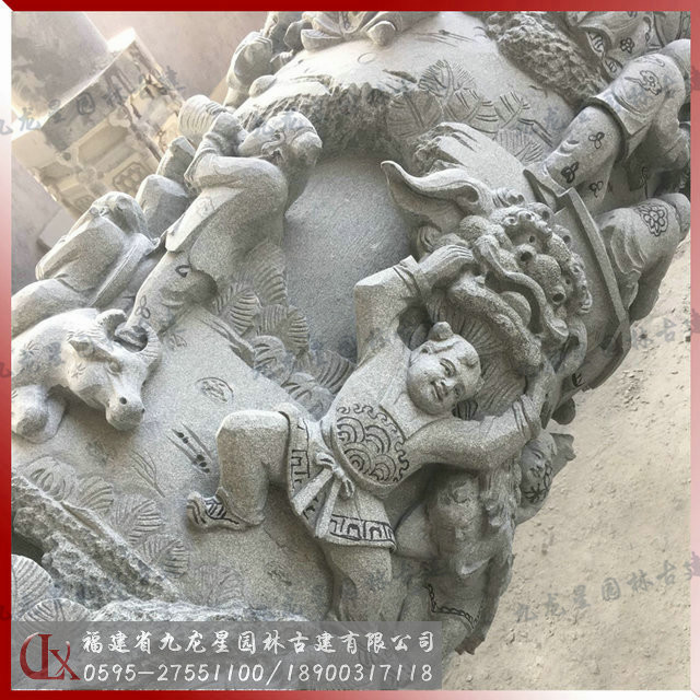 百子柱石雕加工局部細節(jié)圖來源于九龍星園林古建。