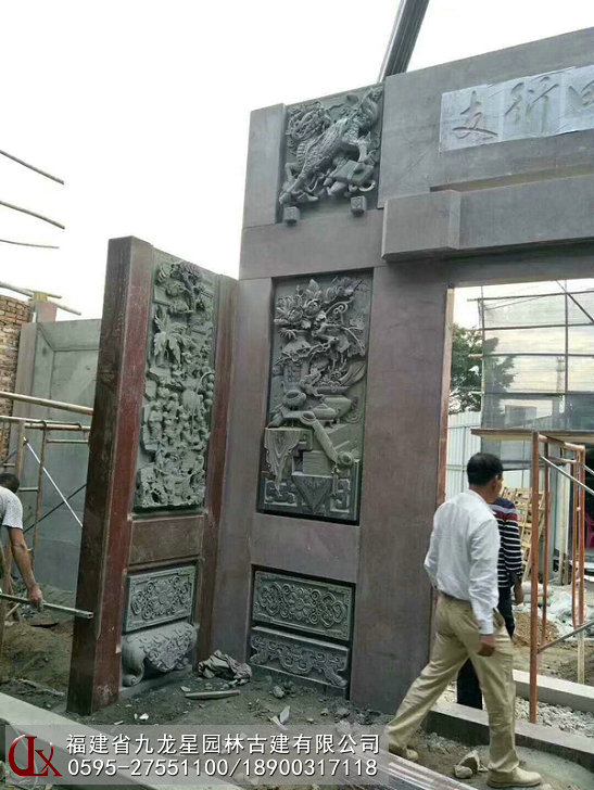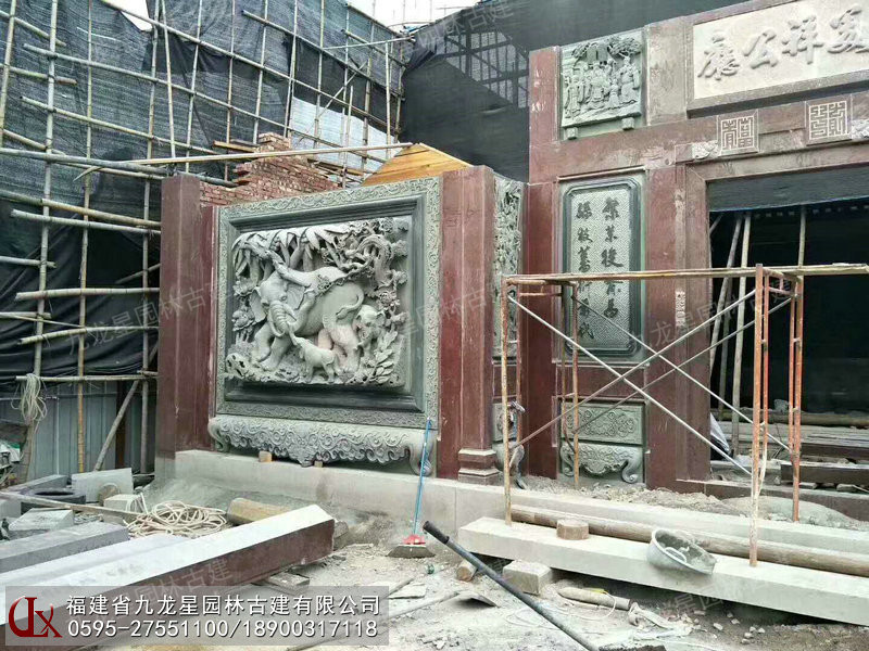 寺廟墻面浮雕壁畫安裝現(xiàn)場(chǎng) 九龍星園林古建