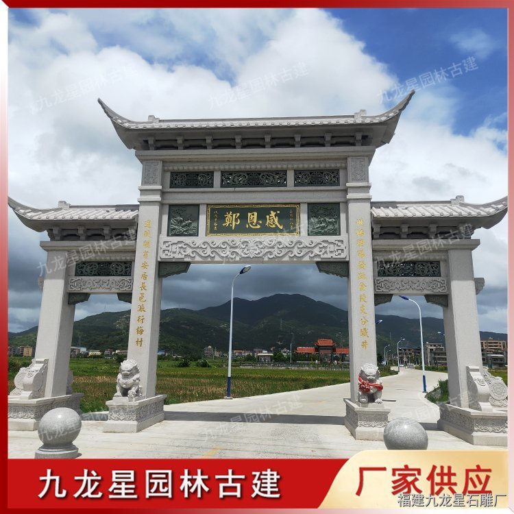 農(nóng)村石雕牌坊常見(jiàn)是用青石、花崗巖制作加工,經(jīng)過(guò)石雕牌坊訂制公司精心雕刻而成。石牌坊多樣的外觀形態(tài),豐富的文化內(nèi)涵,使得村石石雕牌坊成為新農(nóng)村建設(shè)的標(biāo)志性建筑。