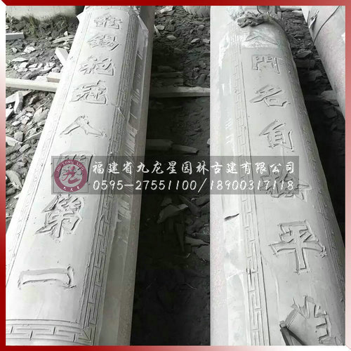 方形圓形石雕對(duì)聯(lián)柱寺院祠堂古建專用由福建省九龍星園林古建有限公司專業(yè)生產(chǎn)加工,我司常年供應(yīng)傳統(tǒng)手工寺廟雕刻精雕龍鳳柱、石雕龍柱、盤龍柱、華表龍柱、對(duì)聯(lián)柱、廣場(chǎng)文化柱等各種款式石雕柱子。