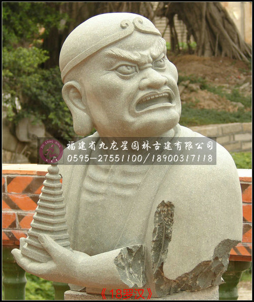十八羅漢半身像雕塑采用天然優(yōu)質(zhì)石材花崗巖精雕而成,因?yàn)榛◢弾r的自然感染力,加上十八尊羅漢像惟妙惟肖,神態(tài)栩栩如生,使得整套羅漢雕像與園林形成渾然一體的感覺。