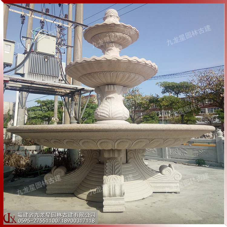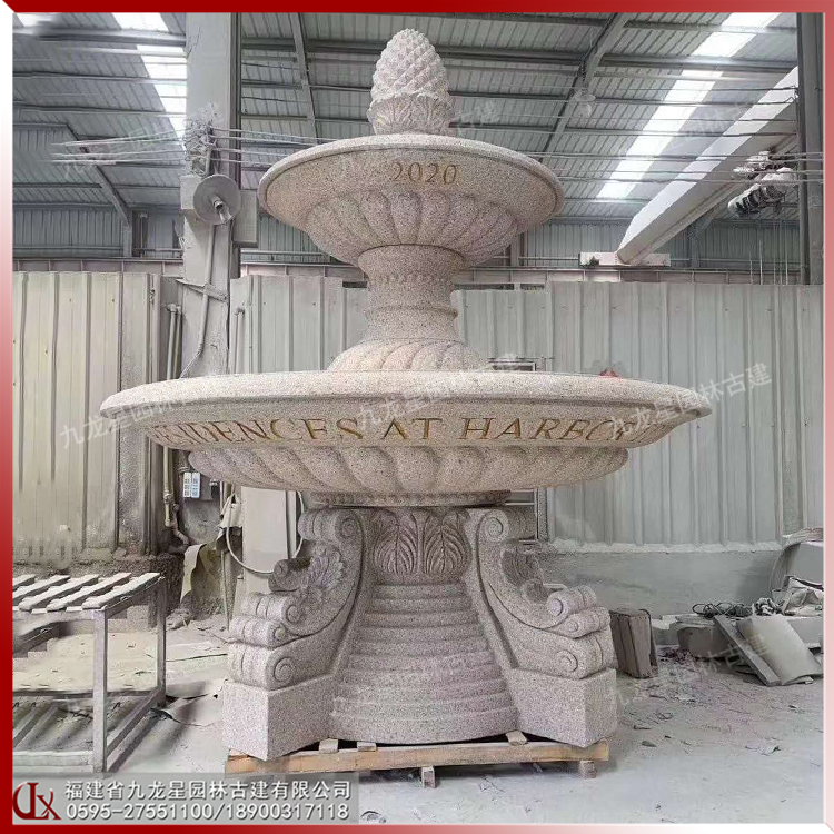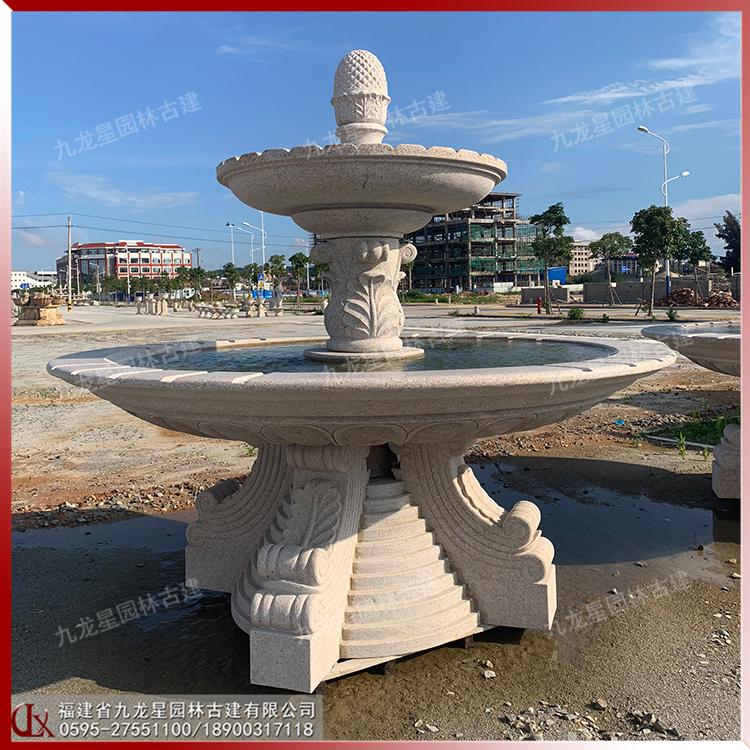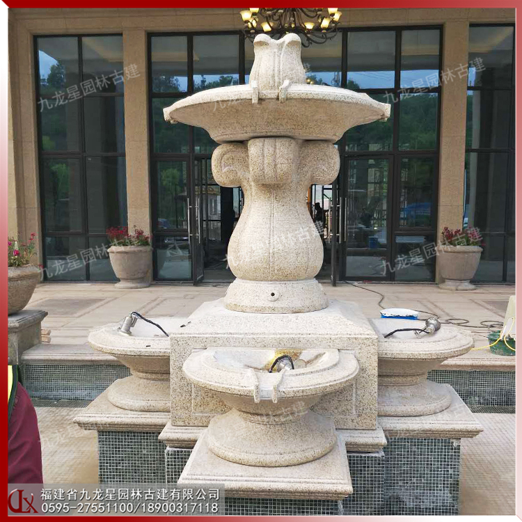石材跌水噴泉圖片 雙層疊水缽石雕廠家熱賣