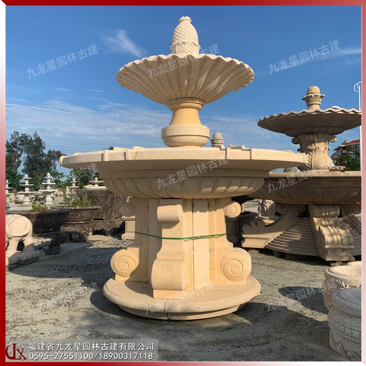 黃銹石石雕噴泉安裝效果 惠安石雕噴泉 廠家價格
