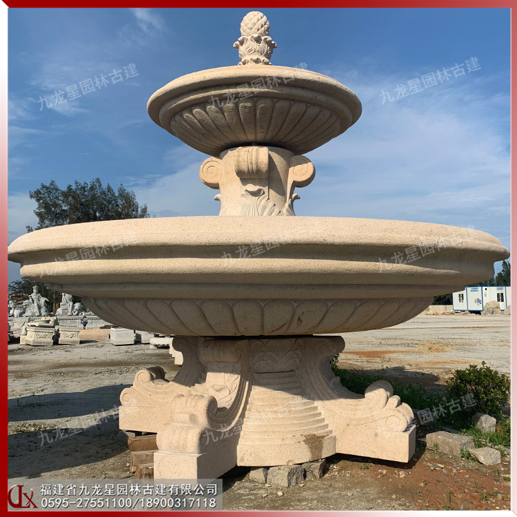 黃金麻石雕水缽圖片 小區(qū)別墅裝飾水景