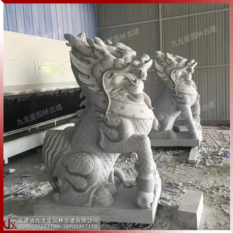 大門(mén)口麒麟石雕 安裝石雕麒麟的寓意 九龍星
